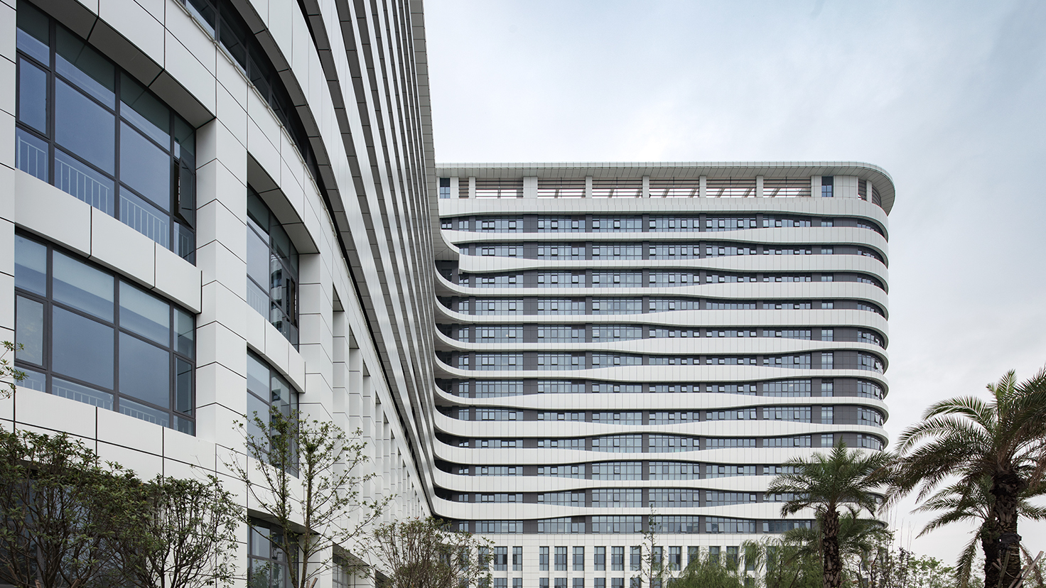 設(shè)計(jì)背景:花園中的醫(yī)院,將醫(yī)院至于花園之中,是我們對這個新建的醫(yī)院整體環(huán)境的期待。我們將醫(yī)院的主體建筑放置在地塊相對中間的位置,綠化、廣場圍繞著主體建筑,希望我們的病人到達(dá)醫(yī)院門口,走進(jìn)門診大廳或者住院大廳的過程中,感受優(yōu)美的、安靜的環(huán)境,心情愉悅起來。特別是住院病樓,遠(yuǎn)離地塊的邊界,希望他們在病房中有開敞的視線,安靜的環(huán)境,不受制于南邊地塊的以后的建設(shè)的干擾。 根據(jù)醫(yī)院的使用要求,我們住院部分是由一棟15層的兩個護(hù)理單元的普通住院大樓和一棟12層的康復(fù)樓組成。我們都希望這兩棟大樓直接與醫(yī)療主街相連,便捷地共享醫(yī)技。經(jīng)過多方案比較,我們發(fā)現(xiàn)“Y”字形布局,將這兩棟樓合成一個整體非常契合我們定下的“花園中的醫(yī)院”的想法。