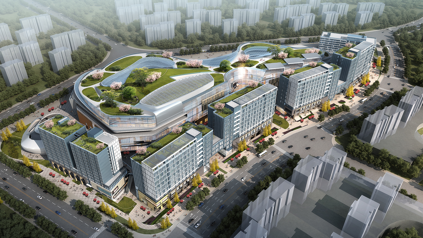 項(xiàng)目規(guī)模:項(xiàng)目總用地面積為7.75萬平米,總建筑面積約38萬平方米,容積率為3.8。