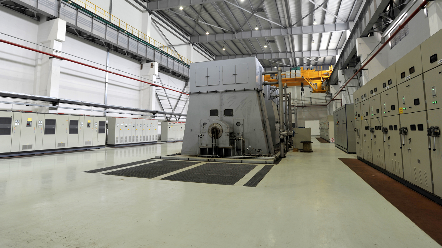 1800MW級汽輪發(fā)電機(jī)系統(tǒng)是目前國內(nèi)規(guī)模最大的汽輪發(fā)電機(jī)試驗(yàn)站,也是世界上目前最大的汽輪發(fā)電機(jī)試驗(yàn)站之一。試驗(yàn)檢測能力及技術(shù)水平達(dá)到國際先進(jìn)水平。該試驗(yàn)站由中機(jī)國際承擔(dān)設(shè)計(jì)、項(xiàng)目管理、關(guān)鍵設(shè)備供貨及調(diào)試。