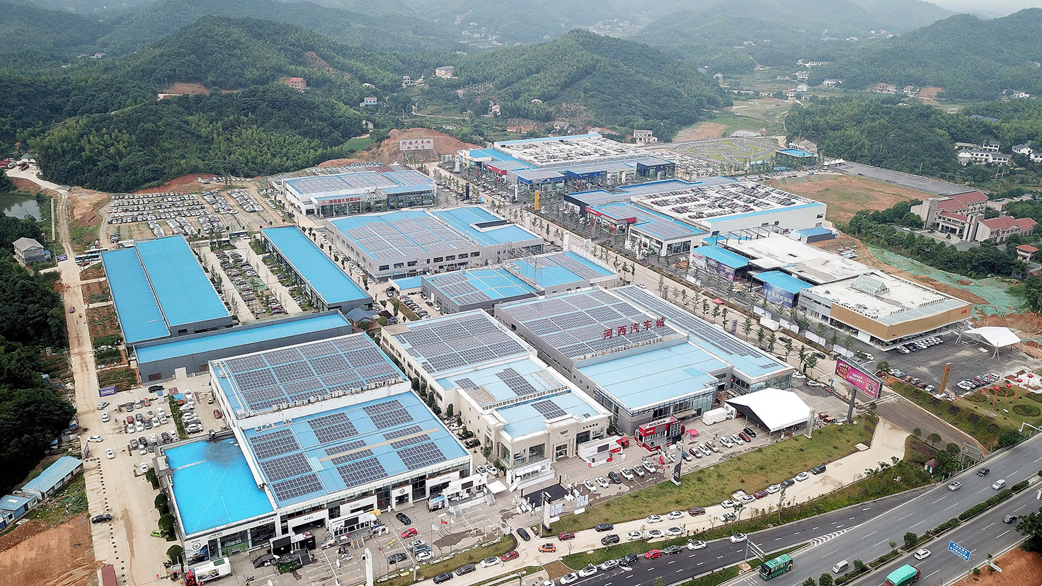 項目簡介:該項目位于湖南長沙西出口,由東旭藍天新能源股份有限公司的全資子公司長沙旭欣新能源有限公司投資建設(shè)的集中式商業(yè)建筑屋頂分布式電站,共由十多個汽車銷售企業(yè)的商業(yè)屋面組成。此項目采用“自發(fā)自用,余電上網(wǎng)”的并網(wǎng)模式,每年能為企業(yè)節(jié)約 250 萬度電,并成為長沙河西交通要道的一道亮麗的風(fēng)景線。