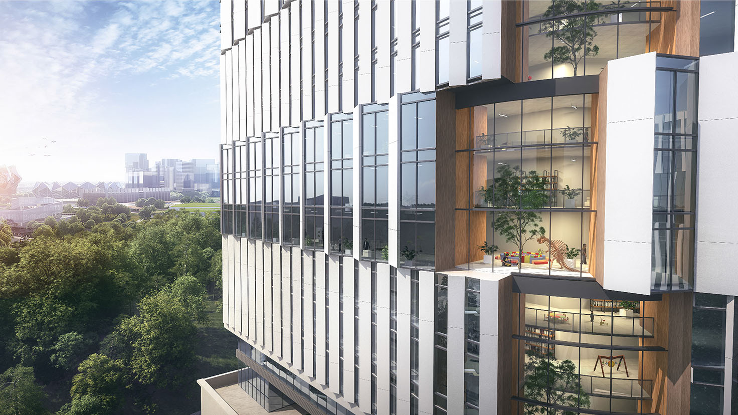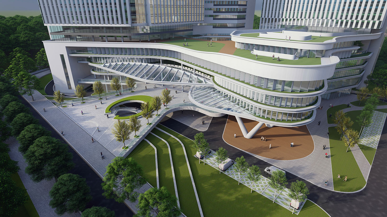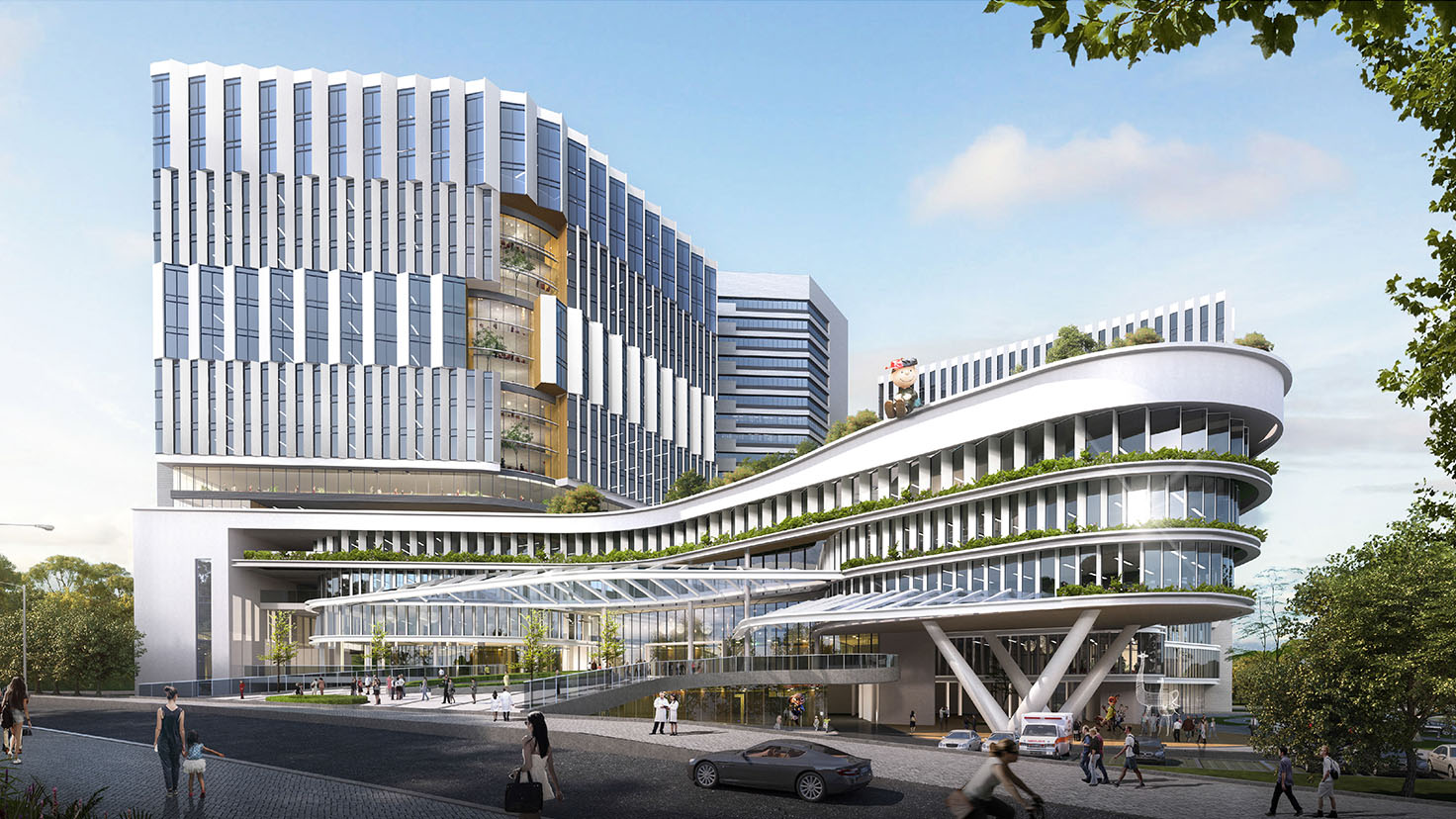設(shè)計(jì)背景:項(xiàng)目定位為以婦女兒童為主要服務(wù)對(duì)象,集婦幼保健、兒童醫(yī)療、科研教學(xué)等功能為一體,在創(chuàng)建現(xiàn)代化三級(jí)甲等??漆t(yī)院的同時(shí),還需補(bǔ)足科研教學(xué)、值班宿舍、行政辦公和食堂等東院區(qū)的功能短板,建成后相對(duì)獨(dú)立運(yùn)行。