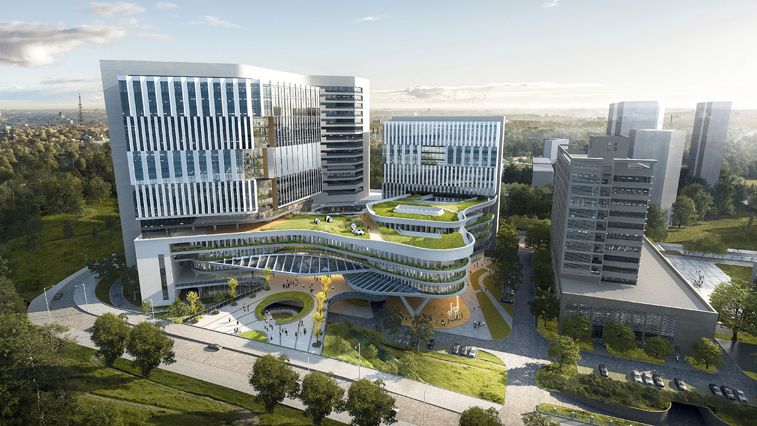 工程簡(jiǎn)介:項(xiàng)目建設(shè)用地面積只有約2.1萬(wàn)㎡,在場(chǎng)地緊張,高密度、高容積率的條件下,項(xiàng)目確保復(fù)雜的人流、車流、物流在有序進(jìn)行的同時(shí)還擁有室外駐足的空間。 我們結(jié)合當(dāng)?shù)丨h(huán)境,以“呵護(hù)之手”表達(dá)新建項(xiàng)目體現(xiàn)的人文關(guān)懷,表達(dá)對(duì)原有建筑的充分尊重,實(shí)現(xiàn)和諧共生;以“生命之環(huán)”遵循高效、便捷、安全、溫馨的醫(yī)療建筑設(shè)計(jì)基本原則,表達(dá)新型婦幼保健院對(duì)全生命周期呵護(hù)的學(xué)科建設(shè)理念。