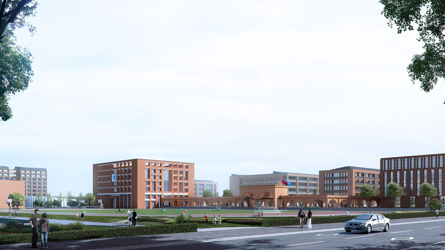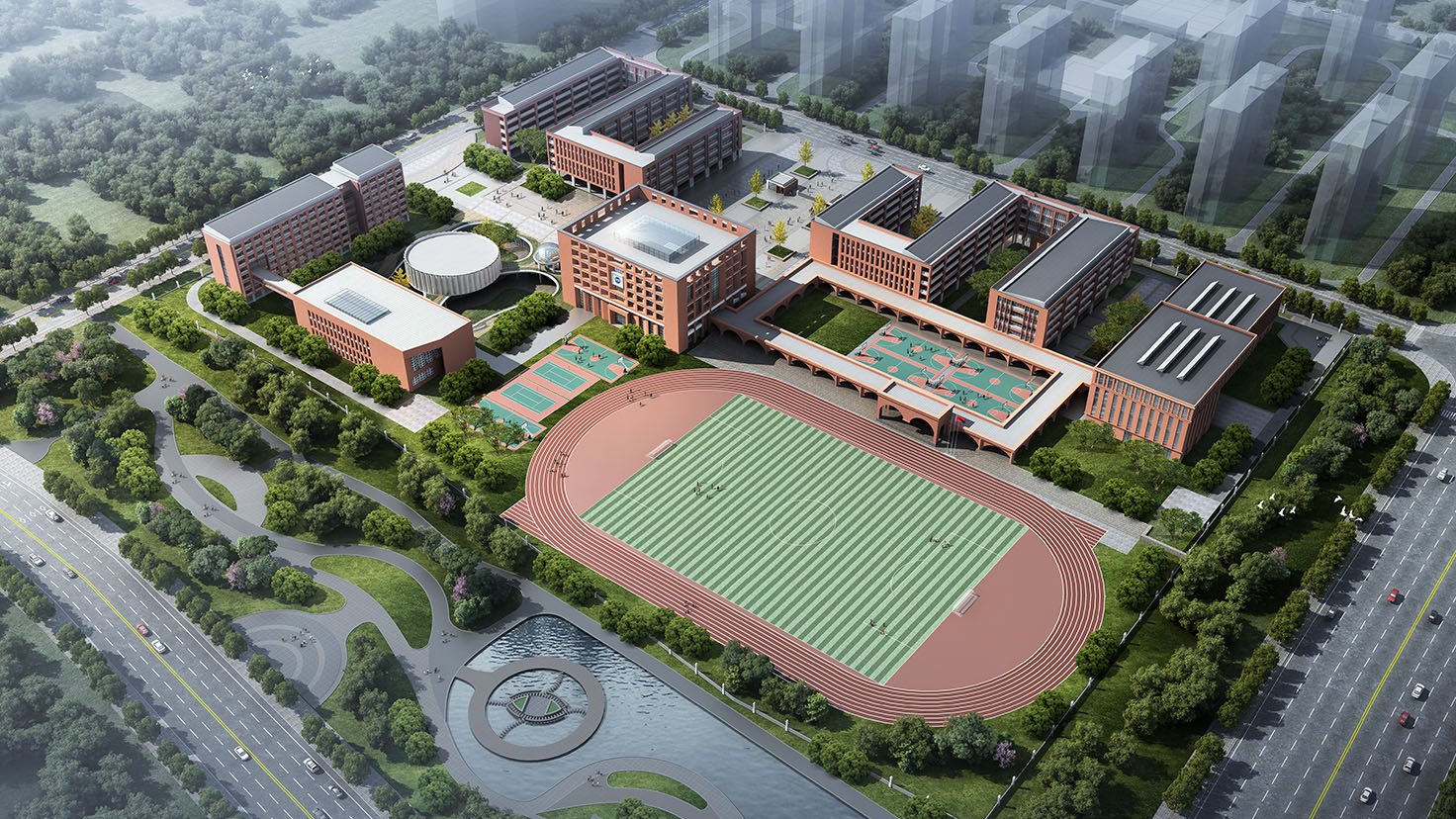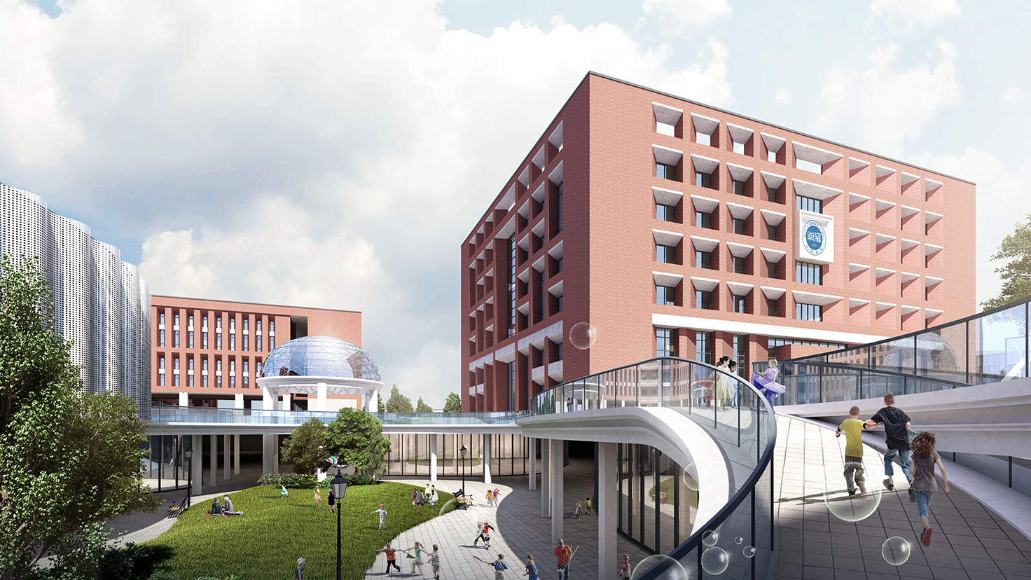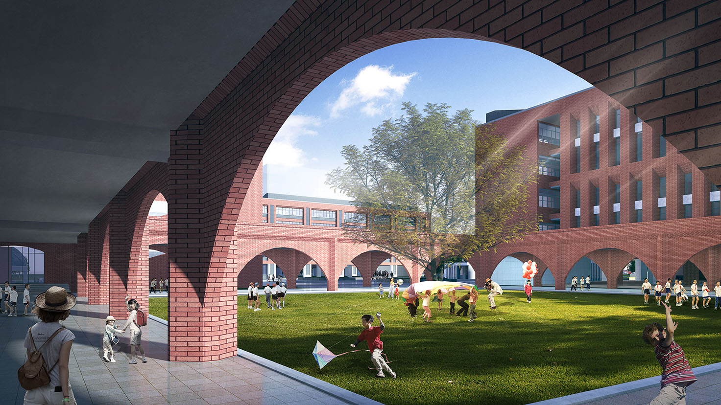 設(shè)計(jì)背景:設(shè)計(jì)之初,我們一直在反復(fù)思考南雅經(jīng)開學(xué)校到底要呈現(xiàn)出怎樣的氣質(zhì)和狀態(tài)?經(jīng)過多番討論,我們達(dá)成共識(shí),認(rèn)為她不僅和雅禮要具有相同的血統(tǒng)和氣質(zhì),也要體現(xiàn)當(dāng)代學(xué)校創(chuàng)新、活力的特質(zhì),即中西合璧,融匯古今。