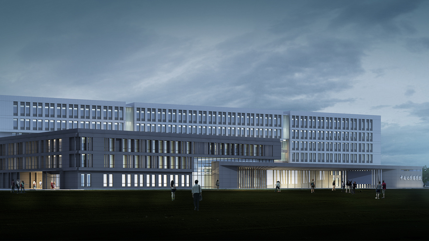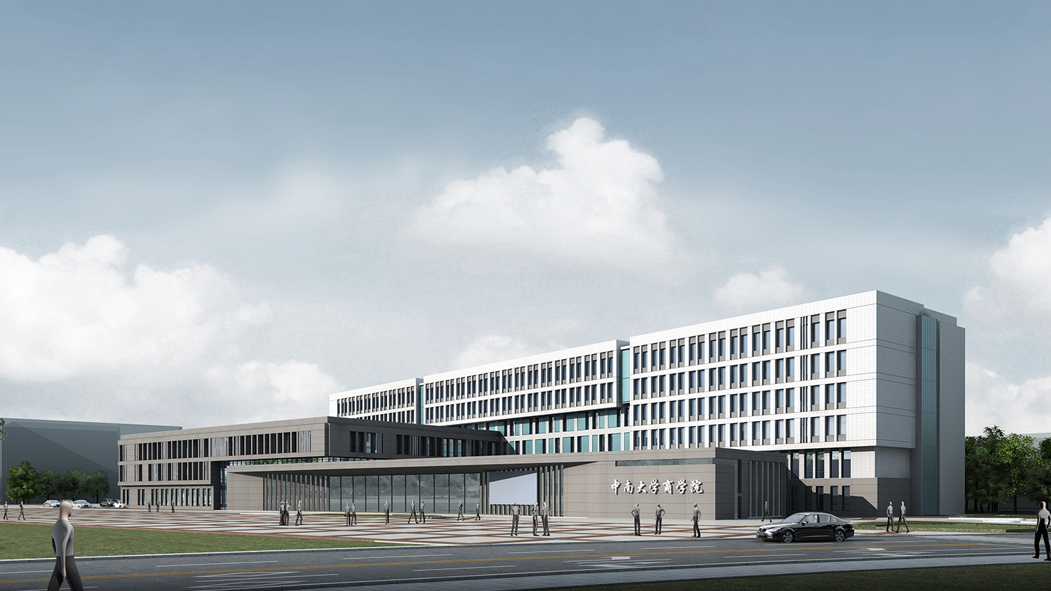 設(shè)計(jì)背景:中南大學(xué)作為以工科為主的院校,新校區(qū)的建筑大多側(cè)重于厚重,敦實(shí),外觀簡(jiǎn)潔實(shí)用;而商學(xué)是注重實(shí)戰(zhàn)的學(xué)科,注重交流,與人溝通,是站在時(shí)代前沿的行業(yè)。作為校區(qū)東大門(mén)的第一棟教學(xué)科研建筑,我們希望商學(xué)樓的外形是大氣的、凝重的、敦實(shí)的,能充分體現(xiàn)商學(xué)院沉穩(wěn)的、具有人文氣息的特質(zhì),成為新校區(qū)建筑形態(tài)的經(jīng)典之筆。